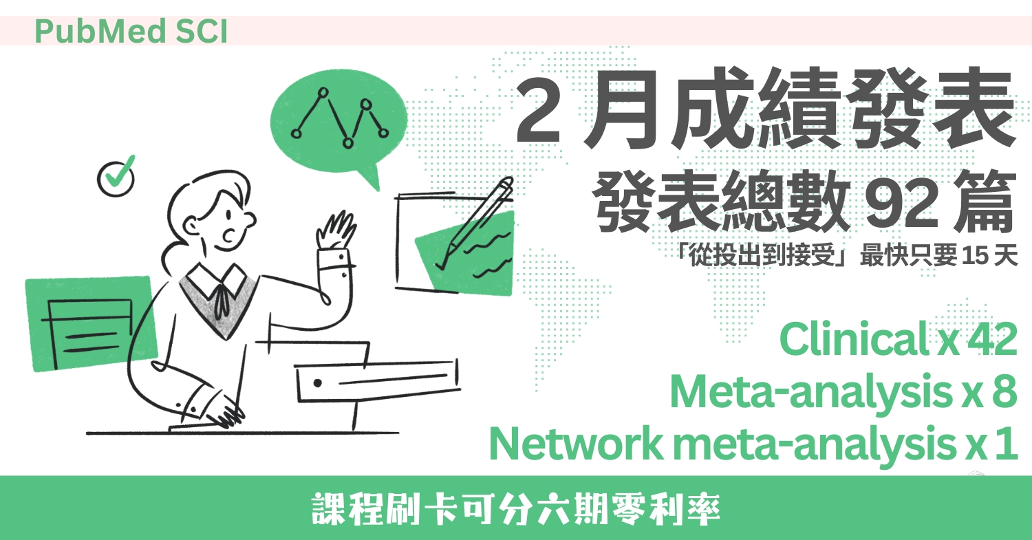 - 本月 92 篇發表的論文,有 4 篇論文是新思惟學員共同合作發表(分別擔任第一作者、共同第一作者或通訊作者),2 人合作 3 篇、3 人合作 1 篇。