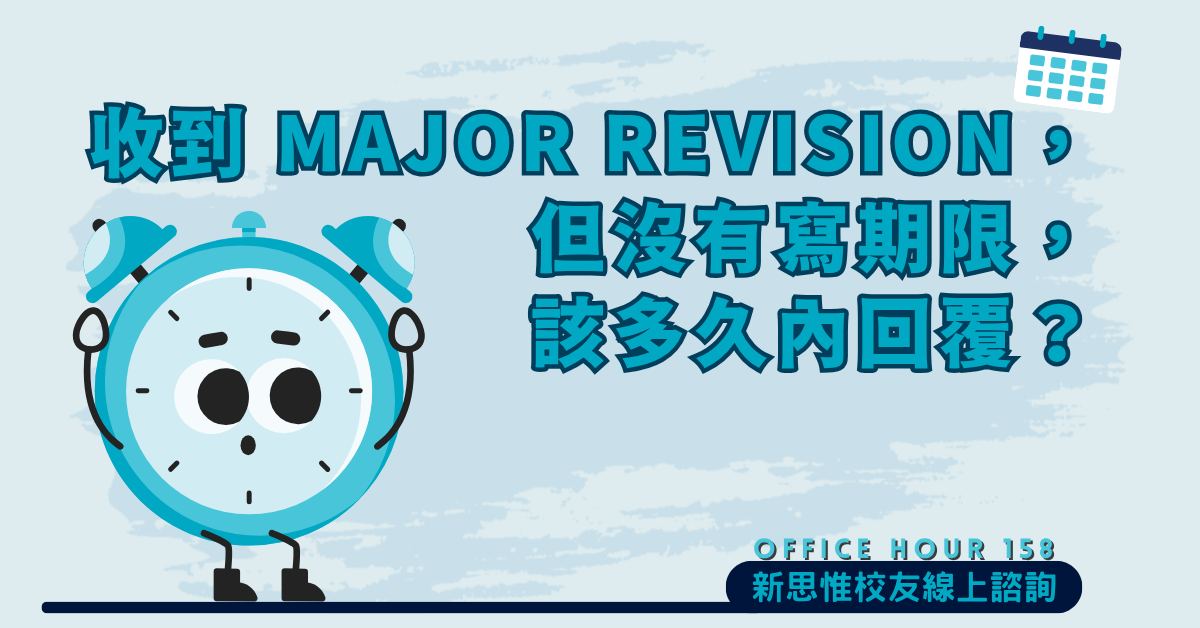 問:校長好,我投稿一篇文章,期刊社給我 major revision,但沒有寫期限,請問我該多久改好送回比較好?
